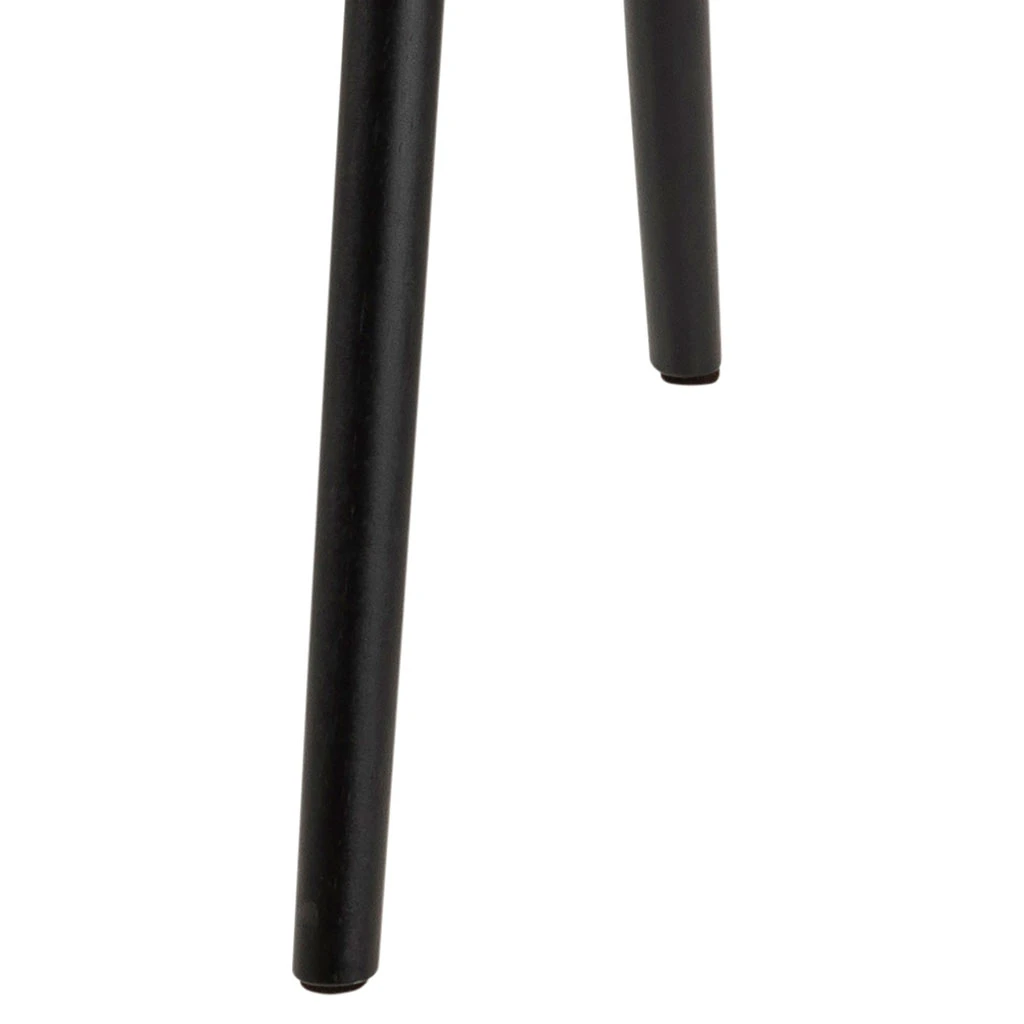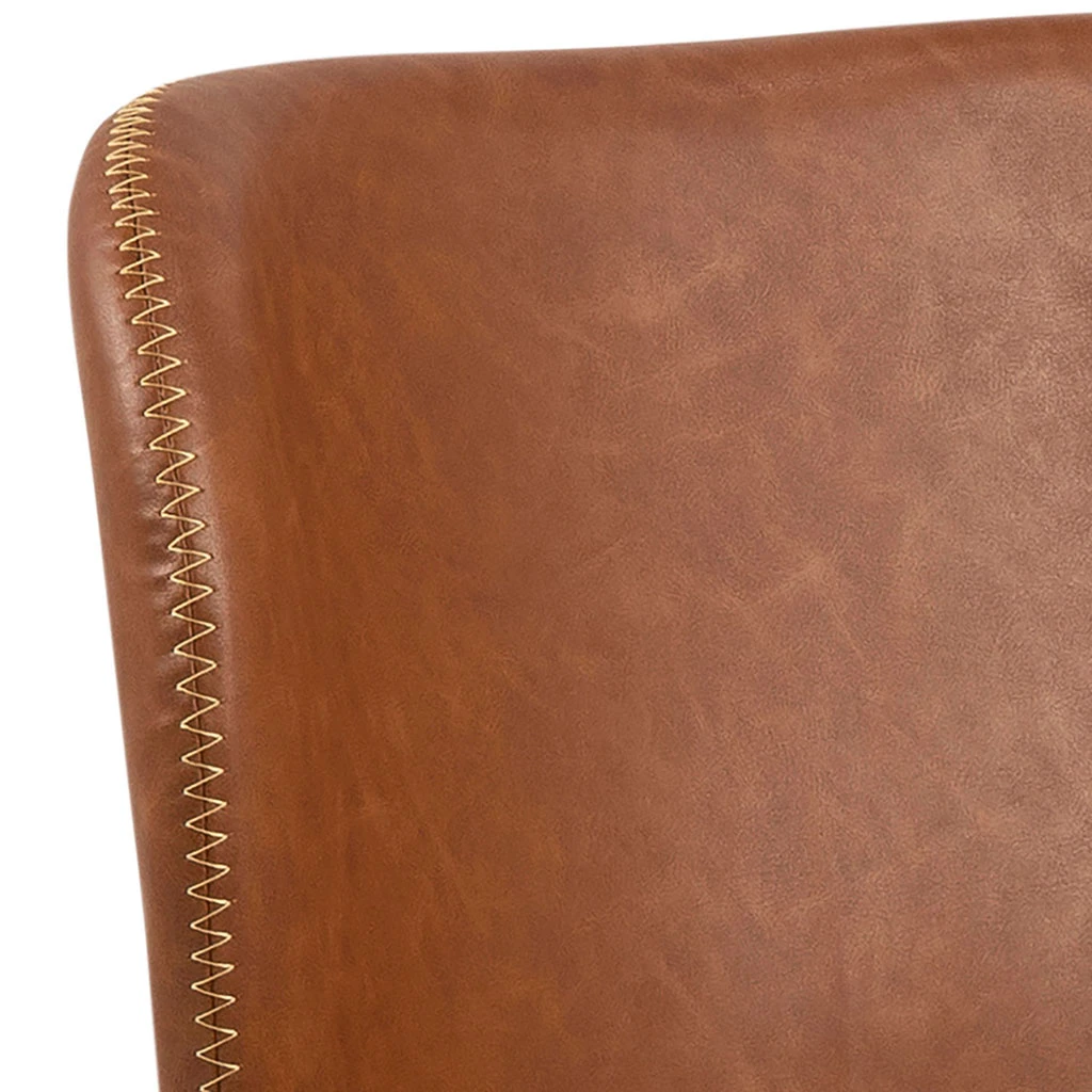 PU aspect cuir rétro. Piètement en bois d’hévéa laqué NC noir mat. Avec coutures crème, coutures zigzag et zip.