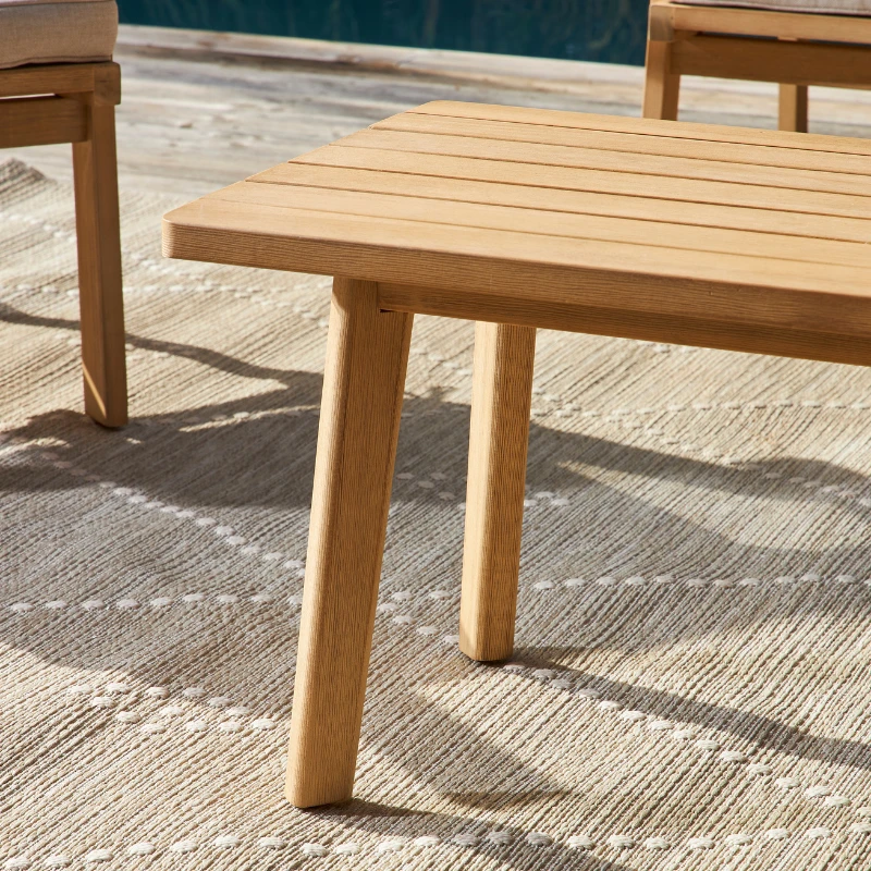 Enfin, on adore l’aspect blanchi du bois d’acacia et sa finition brossé, très tendance.
