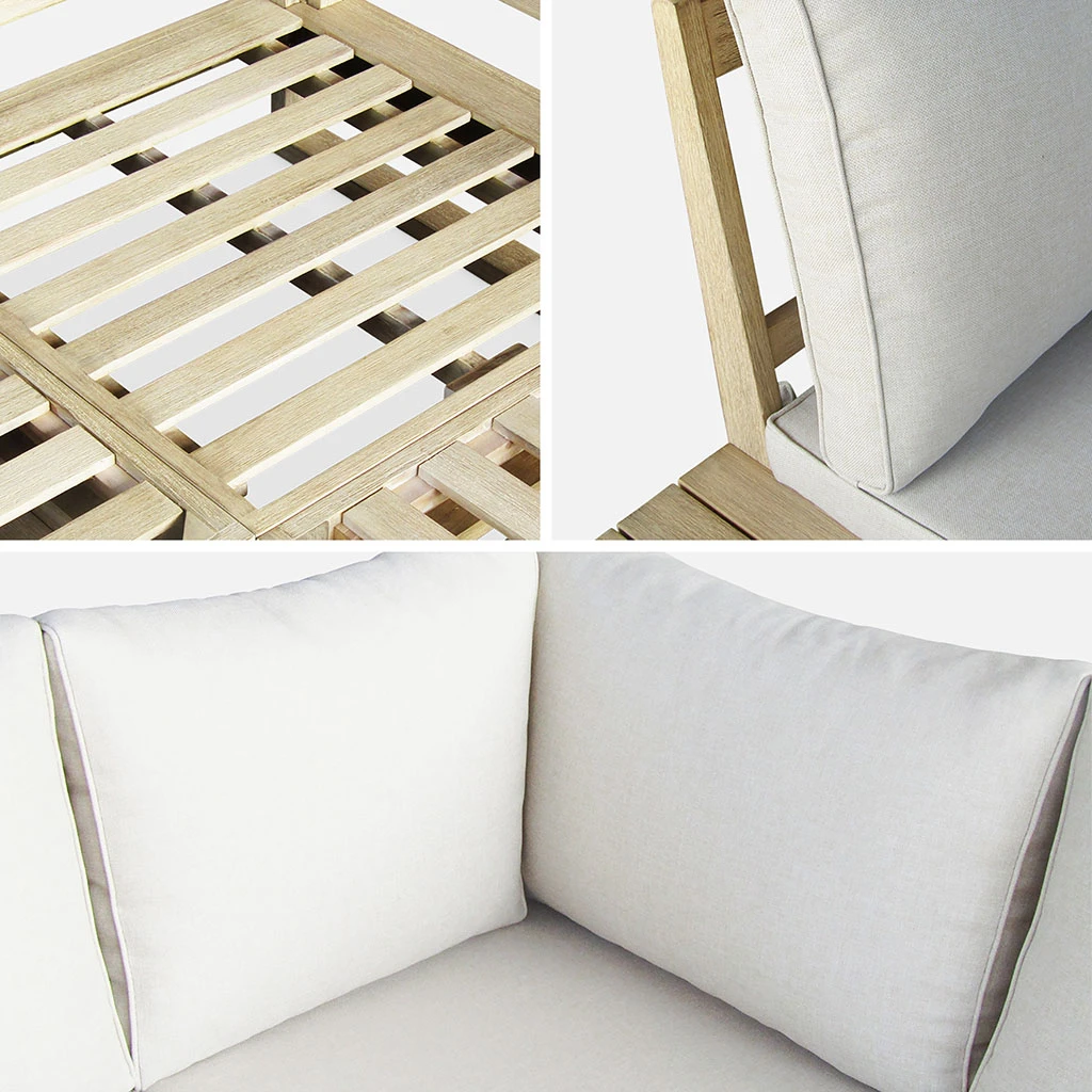 La robustesse de ses materiaux et l’aspect authentique et intemporel du bois d’acacia brossé en font un mobilier de jardin d’exception.