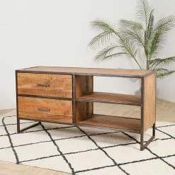 Avec cette commode 2 tiroirs et ses poignées en métal vieilli,