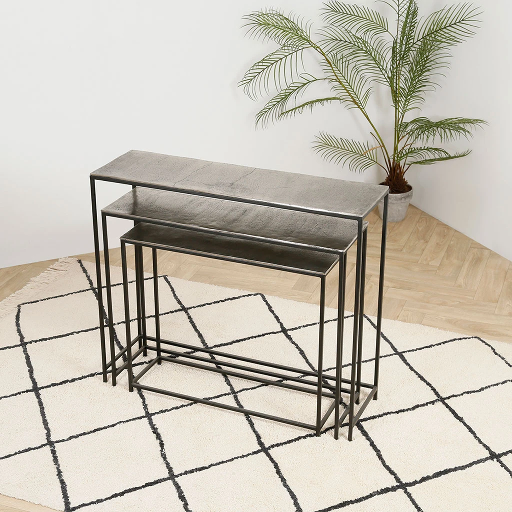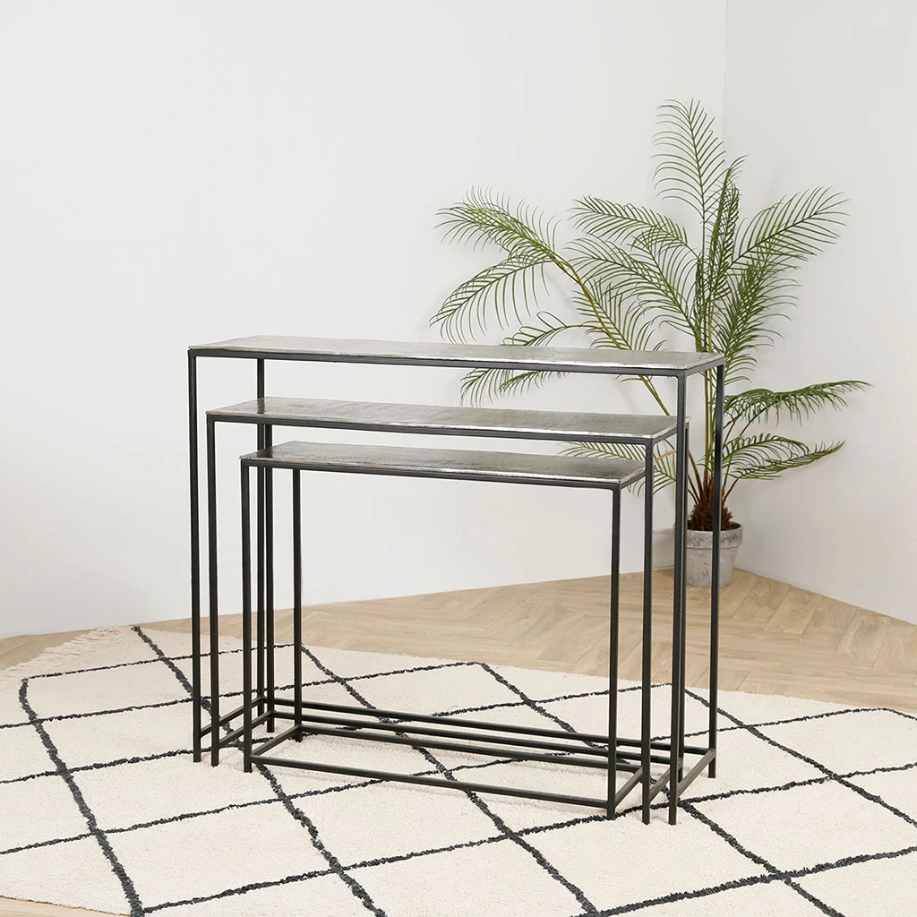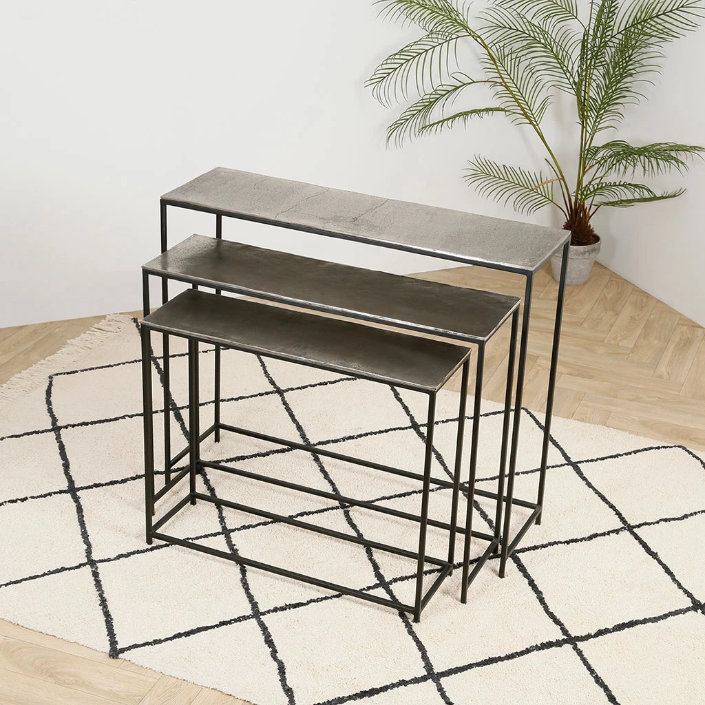 Icône du classique-chic, la console gigogne Felia en fer argenté se décline en 3 éléments.