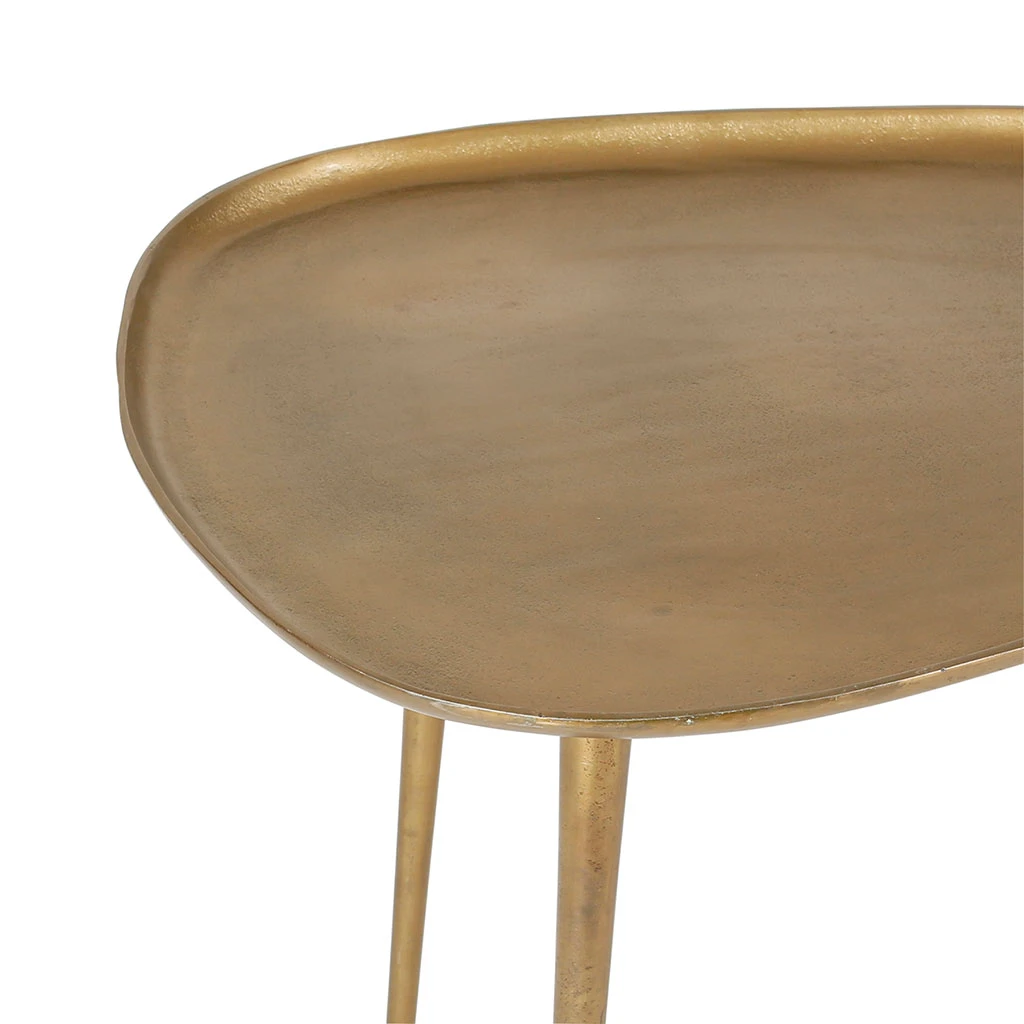 La table dorée peut être utilisée comme table de nuit, ou à côté d’un canapé pour une alternative de table basse.