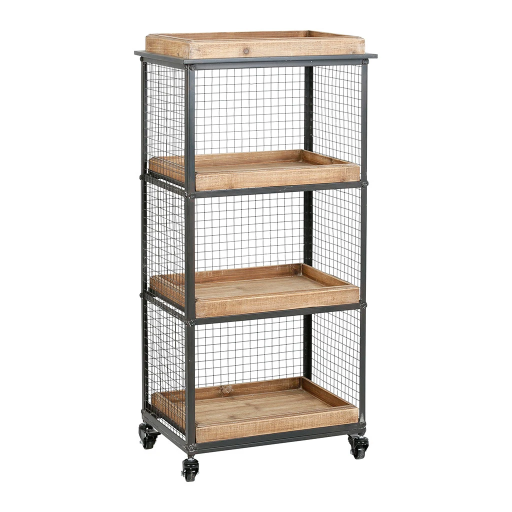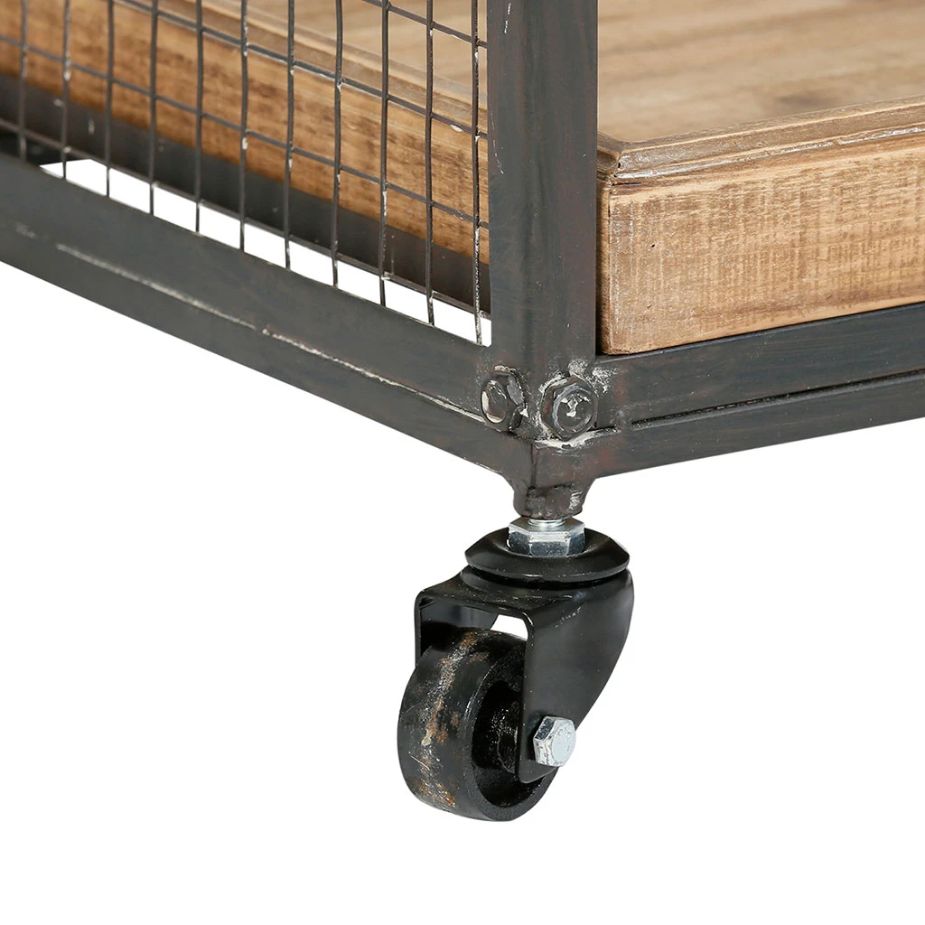 En bois et en fer noir, vous allez adorer le côté pratique de cette déserte sur roulette esprit campagne.