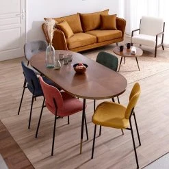 White Label Living Table à Manger Ovale En Noyer Plaqué Et Métal Doré 180x90cm – Denise