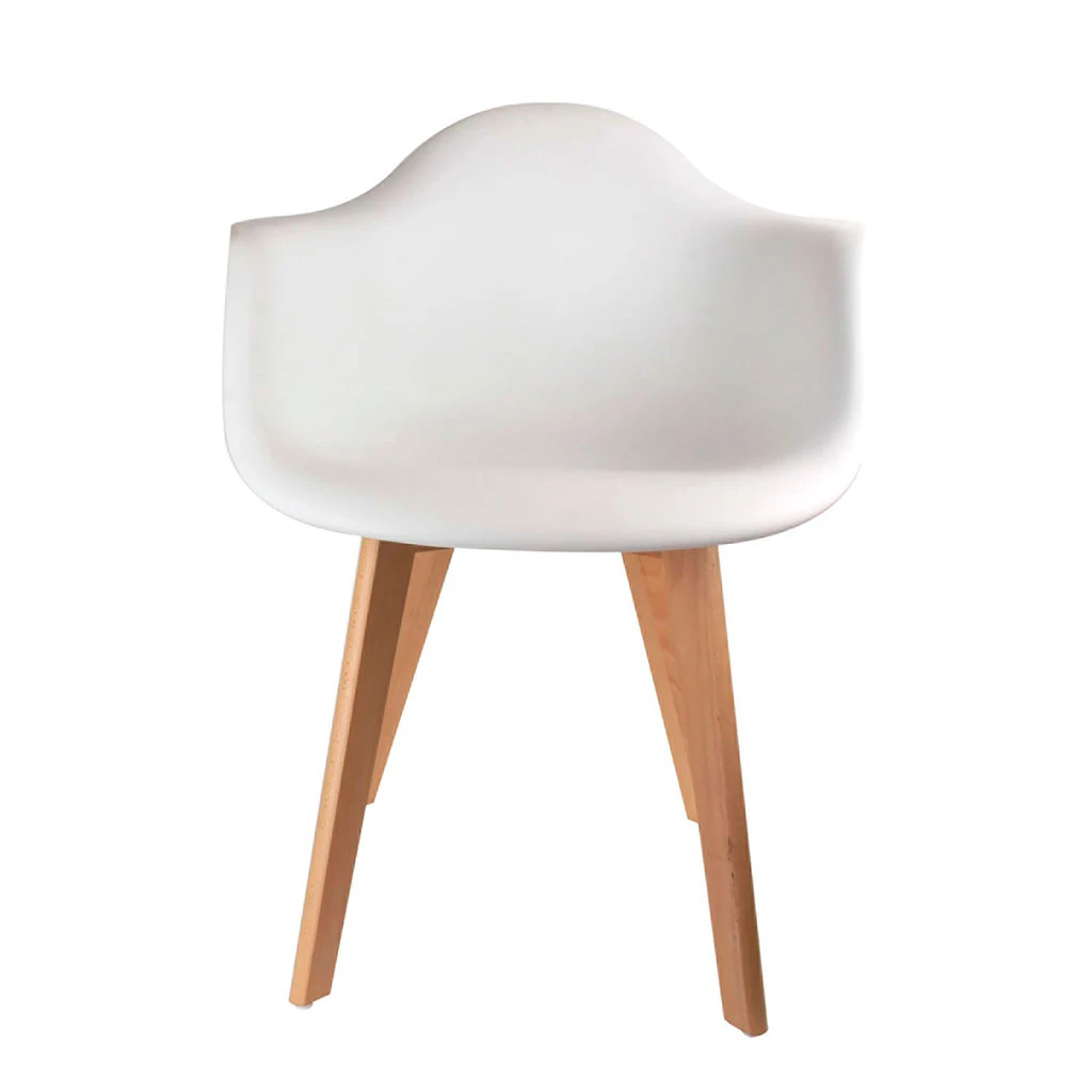 Venez découvrir notre Fauteuil scandinave blanc avec une assise en plastique, facile d’entretien et pied en bois de hetre.