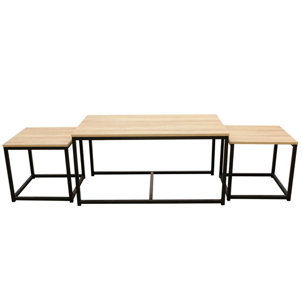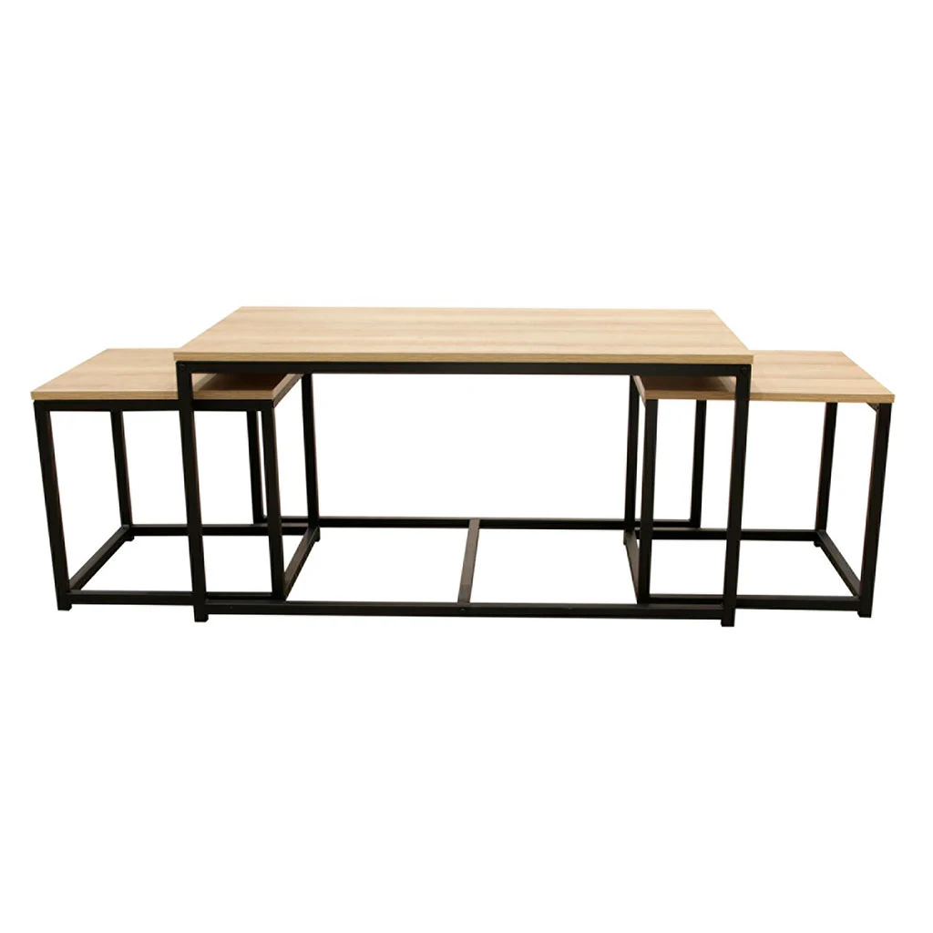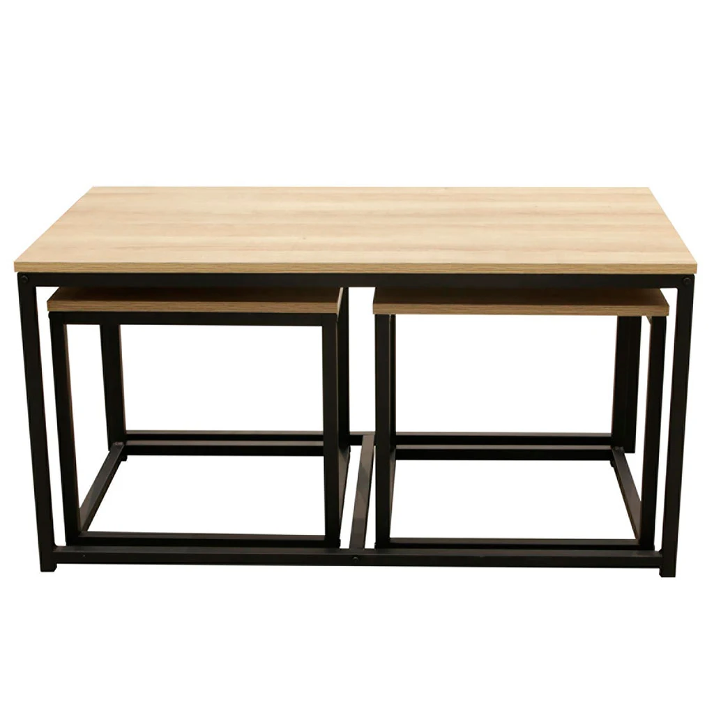La table basse gigogne Selya présente un mélange de matériaux pour créer un équilibre parfait.
