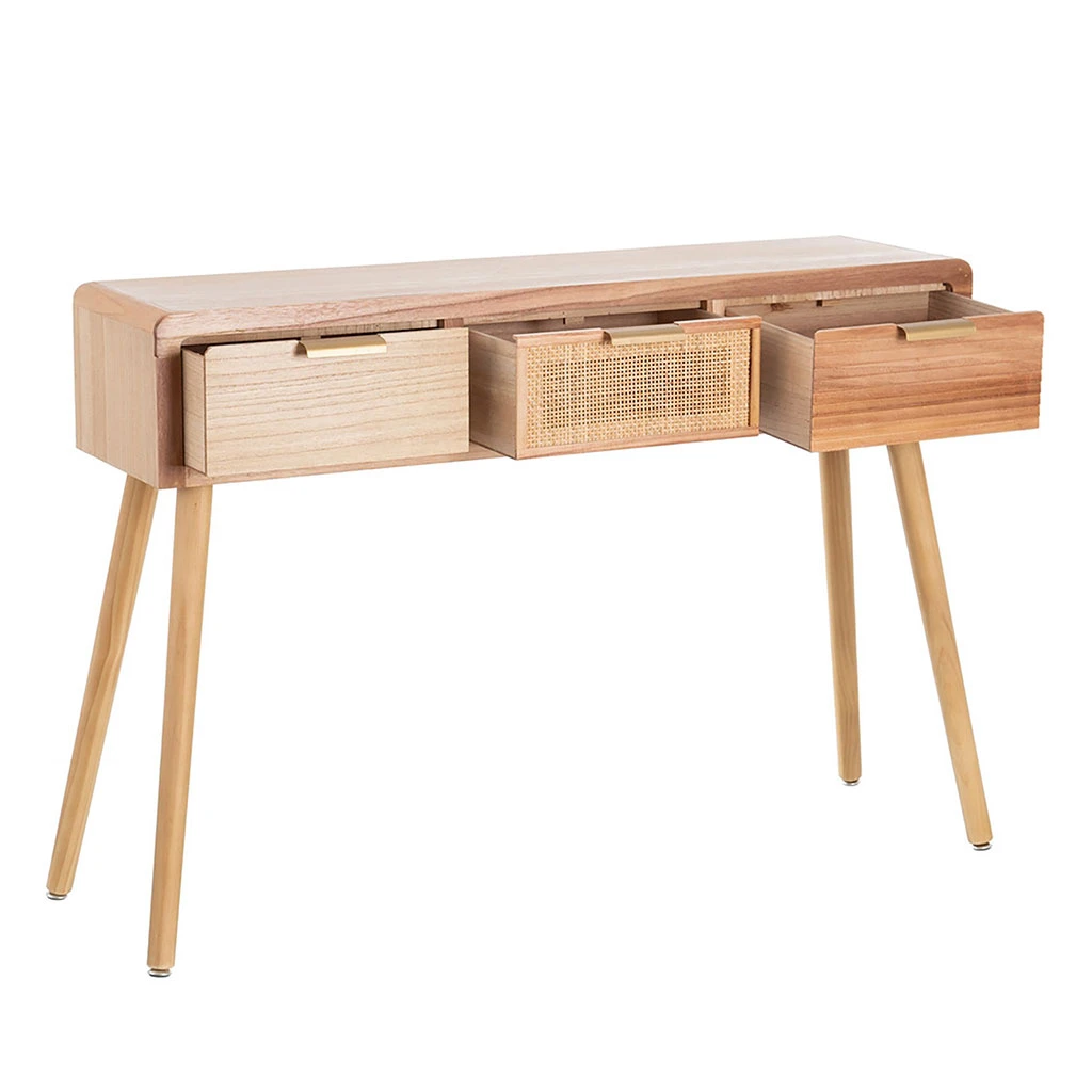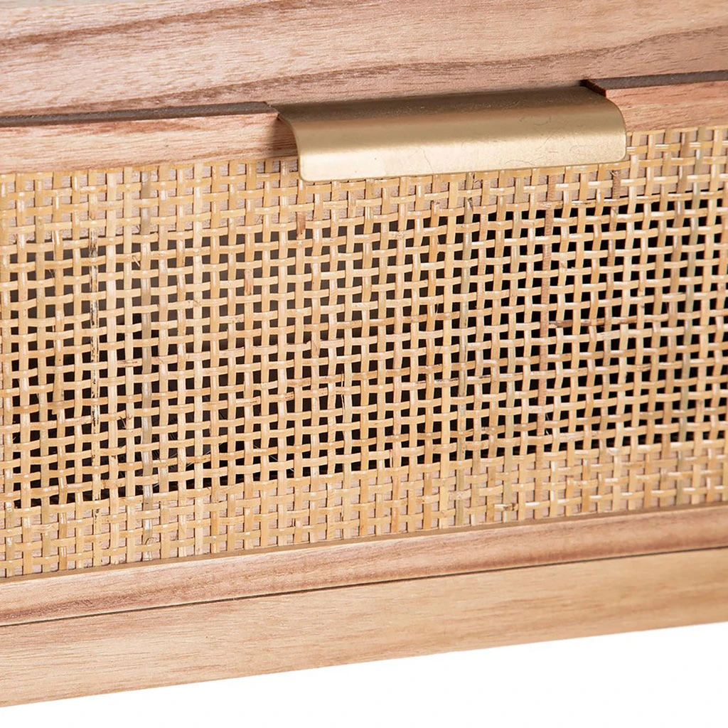 Cette console en bois et rotin s’intègrera parfaitement dans votre salon, votre entrée ou votre chambre.