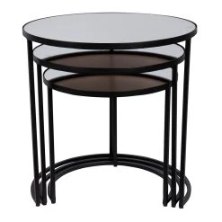 Côté Table 3 Tables D'appoint Gigognes Milune Noires En Metal Et Miroir