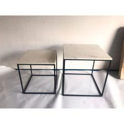 SEMA DESIGN Table Gigogne (x2) En Marbre Blanc Et Fer Noir – Eskela