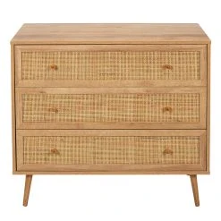 Home Déco Factory Commode En Bois Et Cannage 3 Tiroirs H79cm – Baia