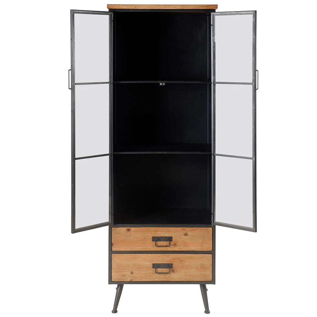 Avec ses 2 portes vitrées et 2 tiroirs, le style industriel vintage de ce meuble, lui permettra de se démarquer dans une pièce.