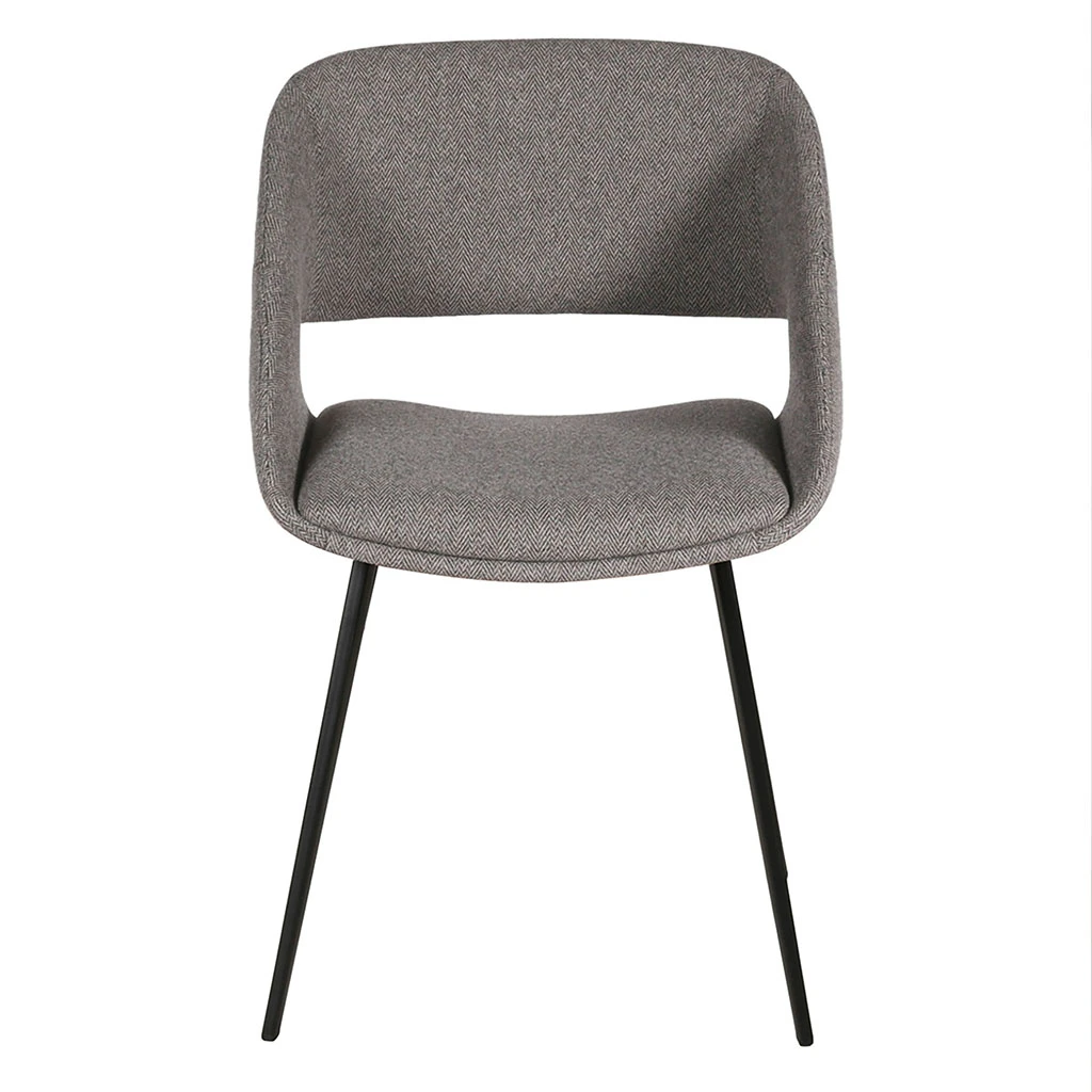 La chaise Alma est le complément idéal de votre bureau ou de votre salle à manger. Son style industriel vintage et son confortable rembourrage en tissu gris clair