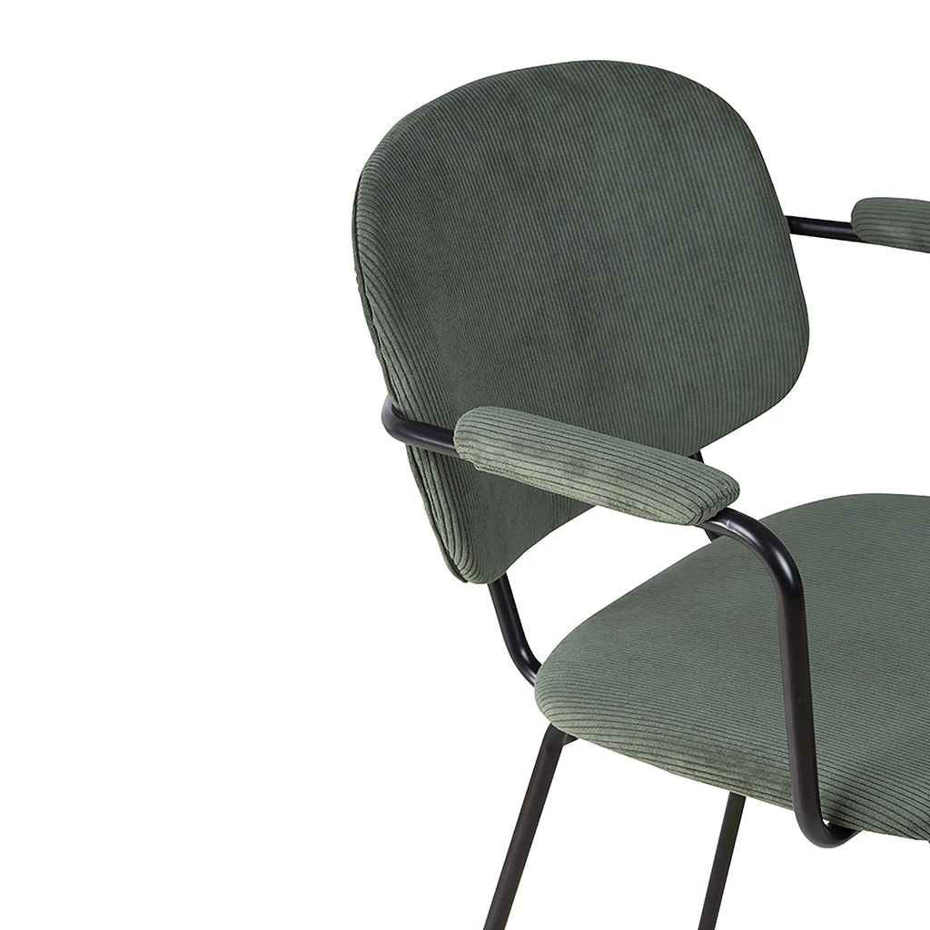 Structure : contreplaqué, mousse polyuréthane. Revêtement : tissu 100% polyester construction velours côtelé. Pieds : métal peinture époxy noire.